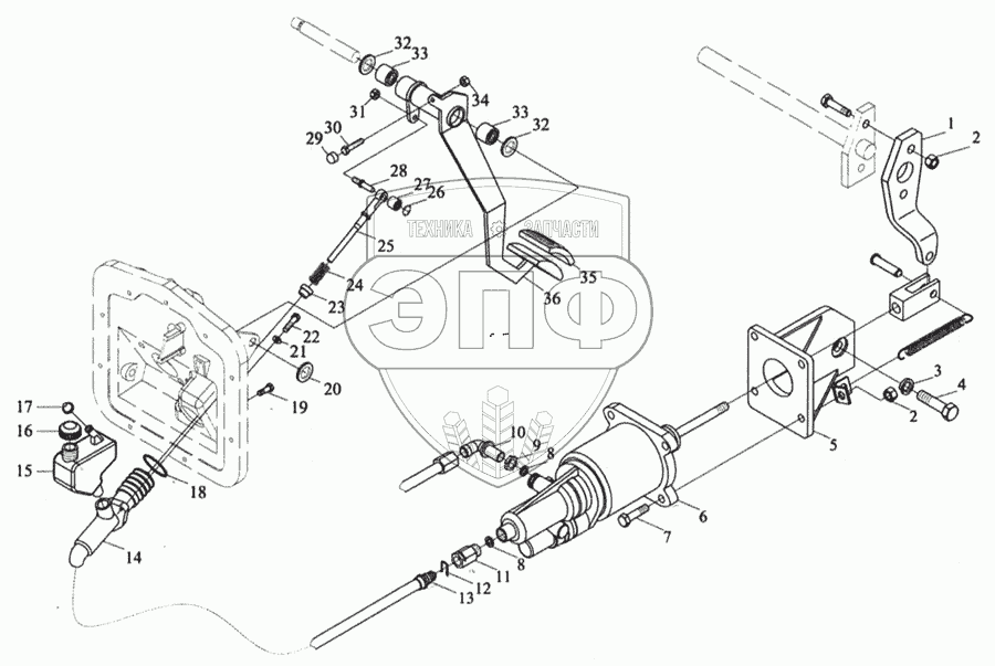 Каталог запасных частей к технике: Shaanxi MAN-F2000 (SX3254JS384). Механизм привода сцепления