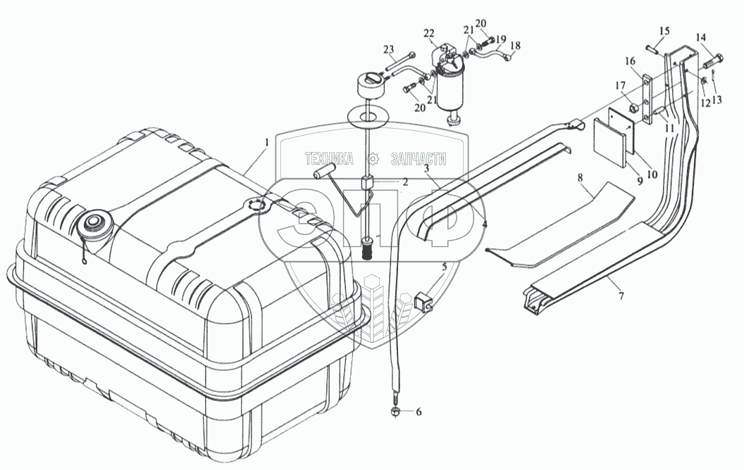 Каталог запасных частей к технике: Shaanxi MAN-F2000 (SX3254JS384). Топливный бак и топливопроводы