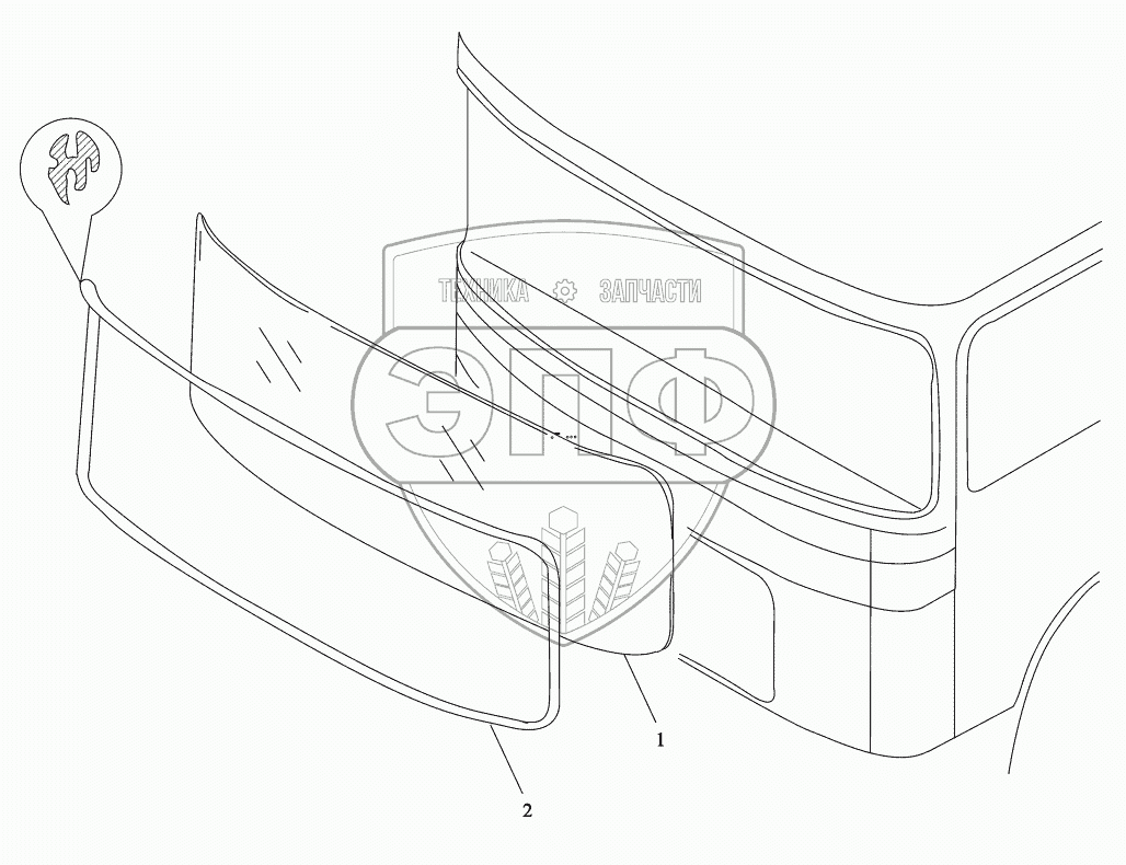 Каталог запасных частей к технике: Shaanxi Shacman SX3316DR366 (F2000). FRONT WINDSHIELD ASSEMBLY