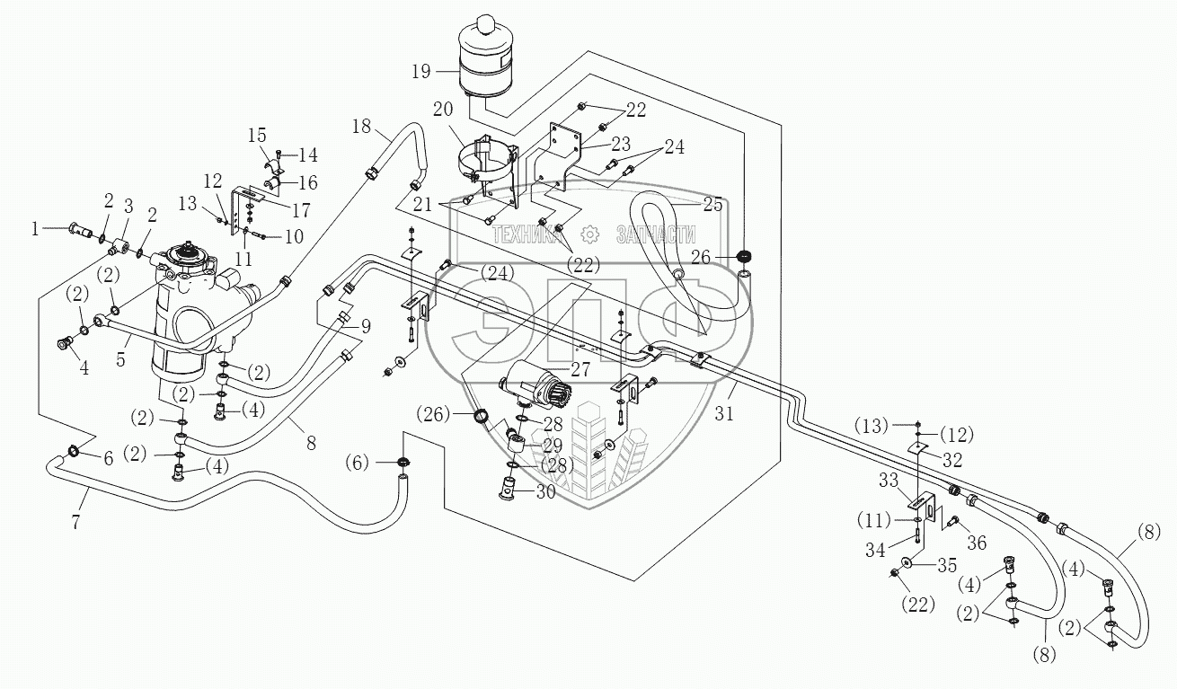 Каталог запасных частей к технике: Shaanxi Shacman SX3316DR366 (F2000). STEERING HYDRAULIC DEVICE