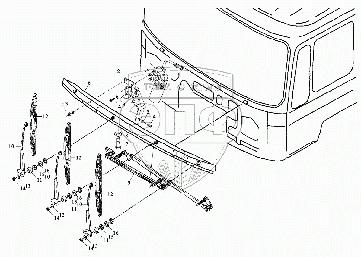 Каталог запасных частей к технике: Shaanxi Shacman SX3316DR366 (F2000). WIPER SYSTEM