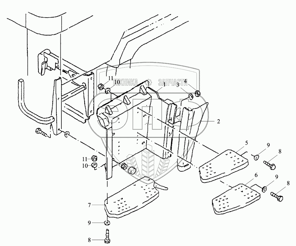 Каталог запасных частей к технике: Shaanxi Shacman SX4255DV385. LEFT DOOR STEP