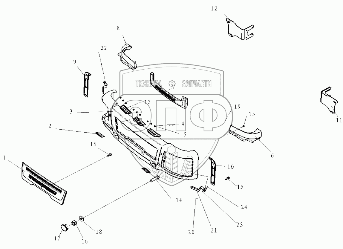 Каталог запасных частей к технике: Shaanxi Shacman SX5318GJBDT386TL. BUMPER AND FRONT BRACKET