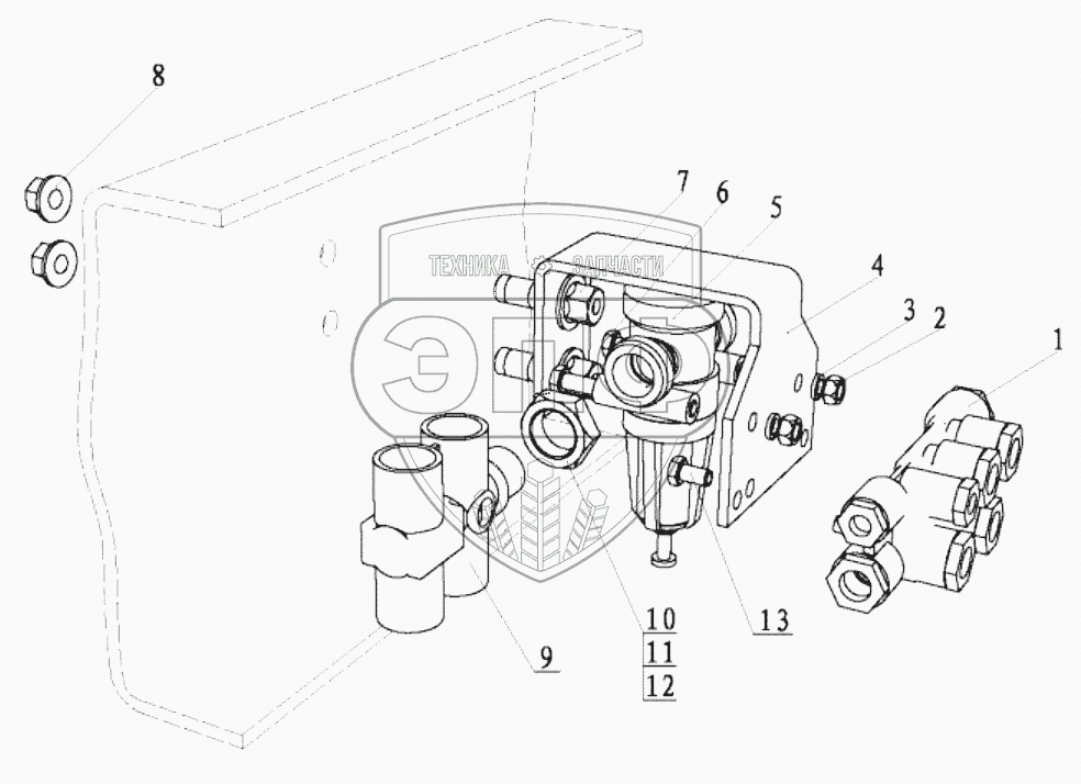 Каталог запасных частей к технике: Shaanxi Shacman SX5318GJBDT386TL. DISTRIBUTION FITTING ASSEMBLE