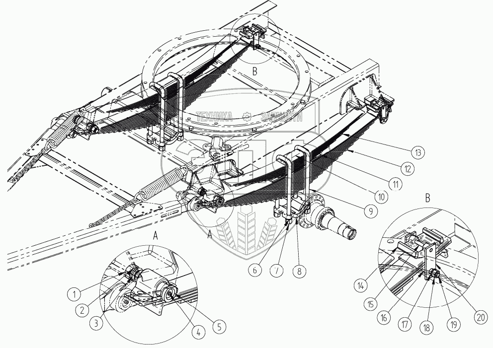 Каталог запасных частей к технике: Ставрапольский завод Автоприцепов СЗАП-8357. Подвеска 8357