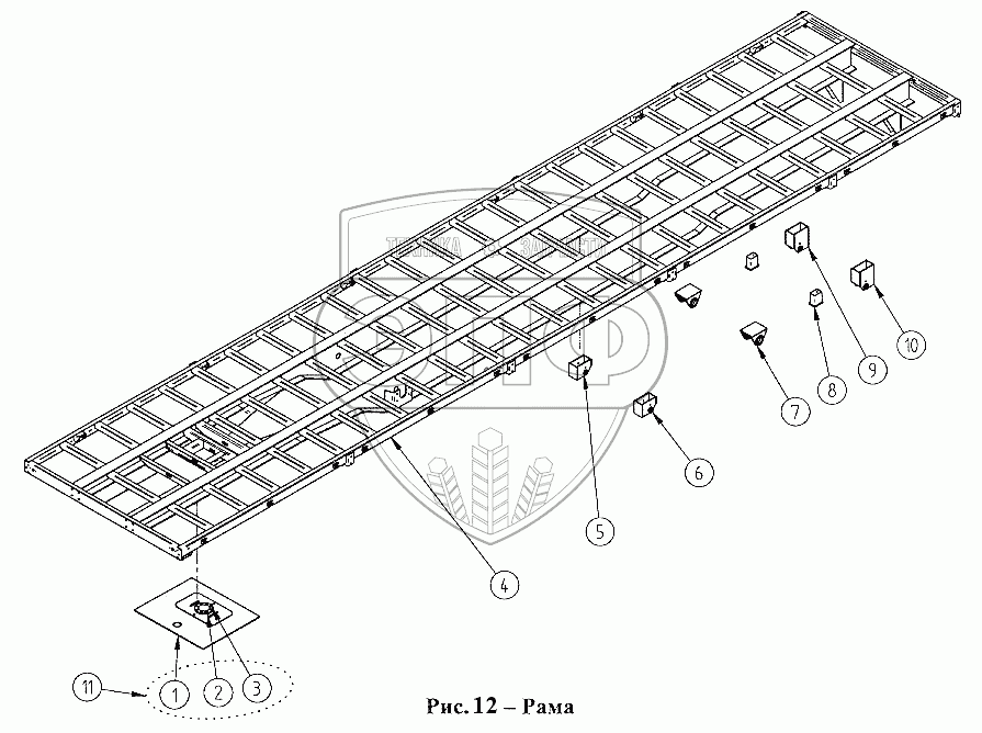 Каталог запасных частей к технике: Ставрапольский завод Автоприцепов СЗАП-93271 (2005). Рама