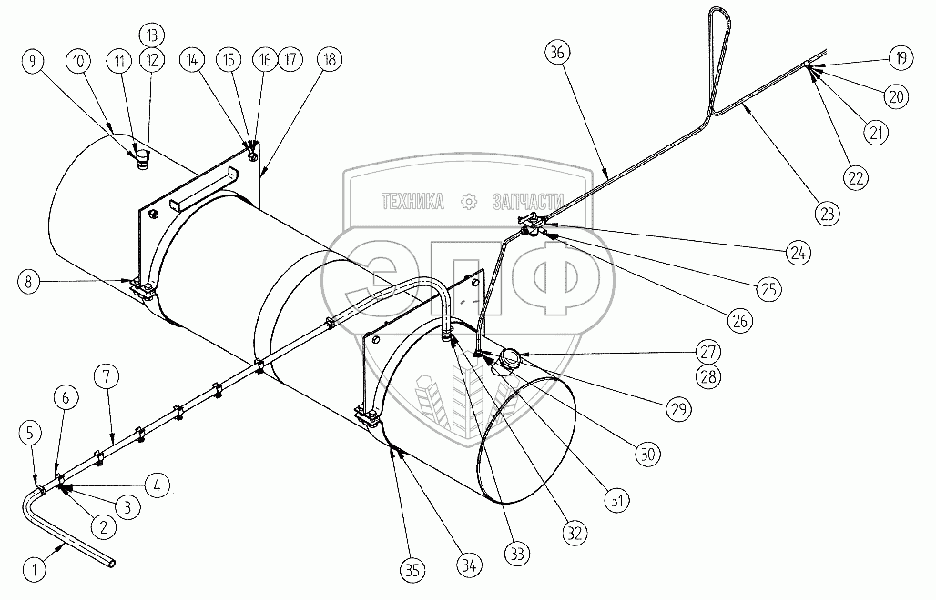 Каталог запасных частей к технике: Ставрапольский завод Автоприцепов СЗАП-9327 (2005). Бак топливный