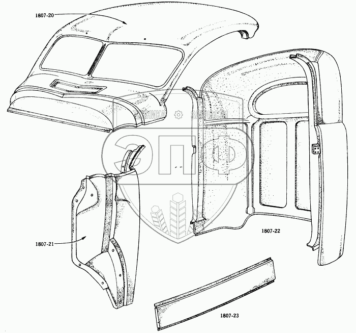 Каталог запасных частей к технике: Studebaker US6x6. Панели кабины/Cab Body Panels