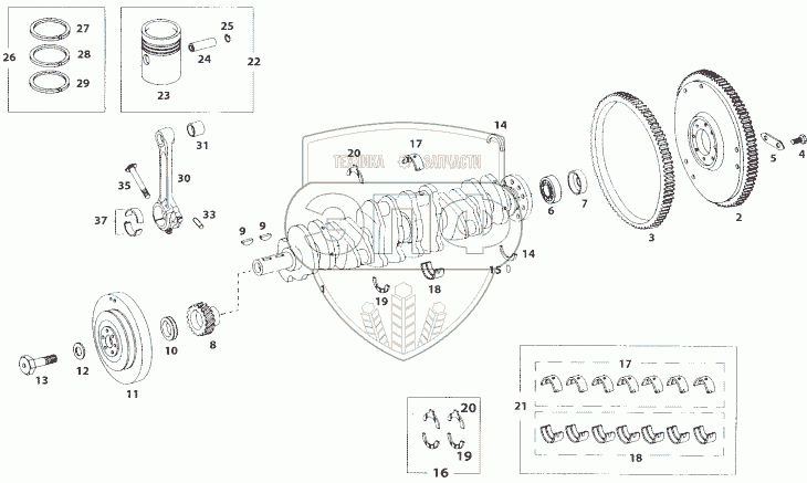 | 21 | 8854 0370 25 25 | Main Bearing Set (STD) Consisting of : | Нет на складе | |