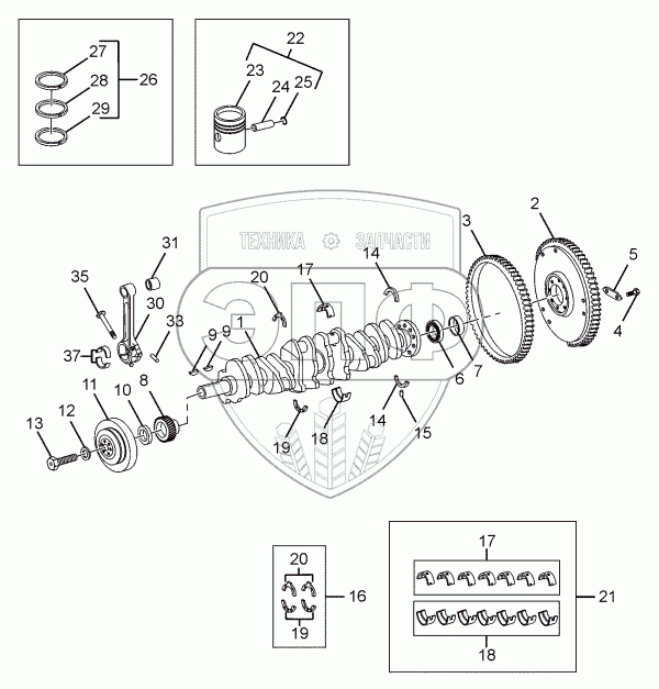 | 7 | 3120310533 | LOCKING RING (IN CRANKSHAFT TO FIX THE BEARING) | Нет на складе | |