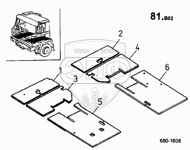 Каталог запасных частей к технике: ТАТРА 815-2 EURO II. Коврики (680)