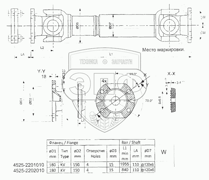 Каталог запасных частей к технике: Тонар-4525. Карданный вал
