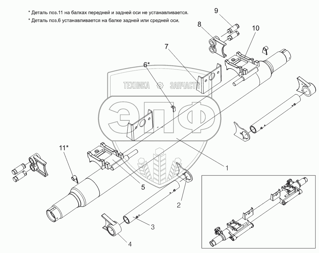 Каталог запасных частей к технике: Тонар-95234. Балка оси