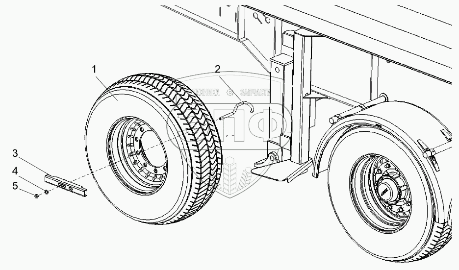 Каталог запасных частей к технике: Тонар-9523. Установка запасного колеса 9523-3105010