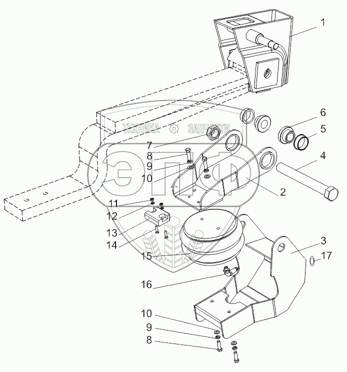 Каталог запасных частей к технике: Тонар-9523 (вариант). Механизм подъёма оси