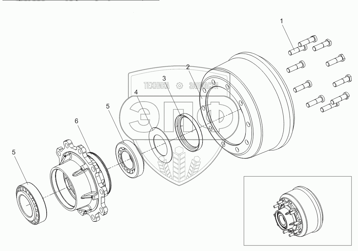 Каталог запасных частей к технике: Тонар-97461. Барабан со ступицей 9042-3104010