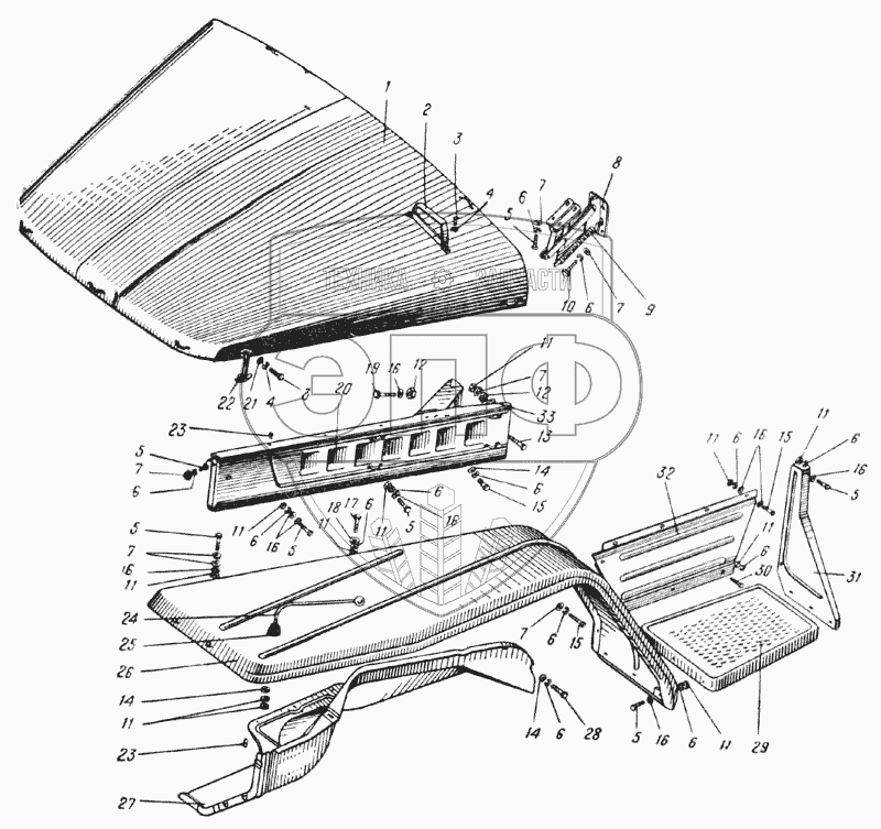 Каталог запасных частей к технике: УралАЗ УРАЛ-375. Детали оперения (Рис. 152)