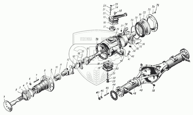 Каталог запасных частей к технике: УралАЗ УРАЛ-375. Передний мост (Рис. 55)