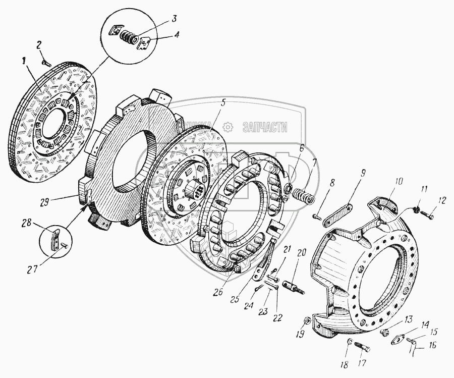 | 29 | 375-1601091 | Диск сцепления ведущий средний в сборе | Нет на складе |