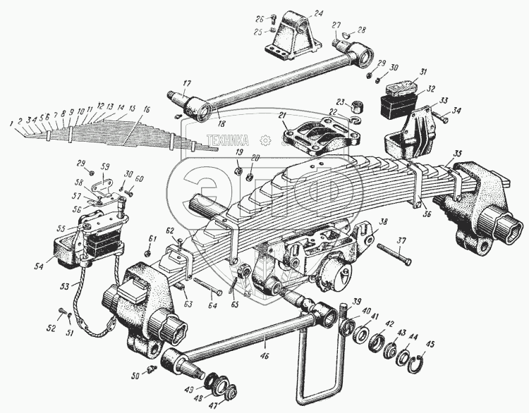 Каталог запасных частей к технике: УралАЗ УРАЛ-375. Задняя подвеска (Рис. 68)