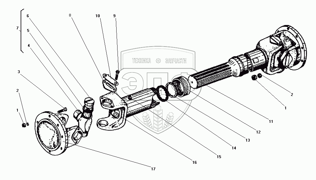 Каталог запасных частей к технике: УралАЗ УРАЛ-43203-10. Карданный вал среднего моста