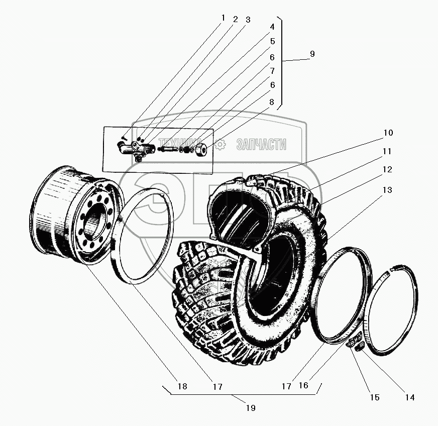 Каталог запасных частей к технике: УралАЗ УРАЛ-43203-10. Колесо и шина