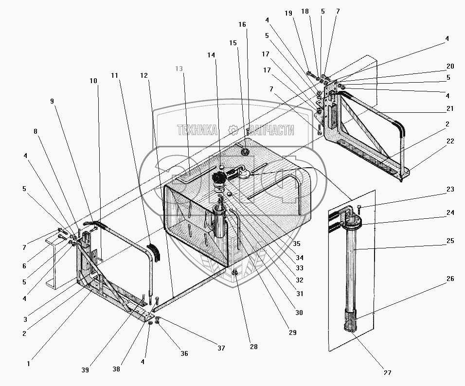 Каталог запасных частей к технике: УралАЗ УРАЛ-43203-10. Основной топливный бак