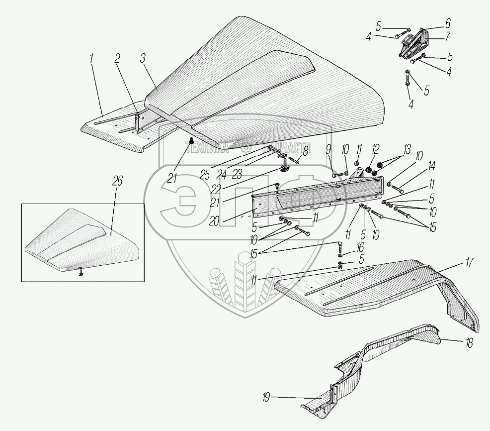 Каталог запасных частей к технике: УралАЗ УРАЛ-43204-1153-70. Оперение кабины