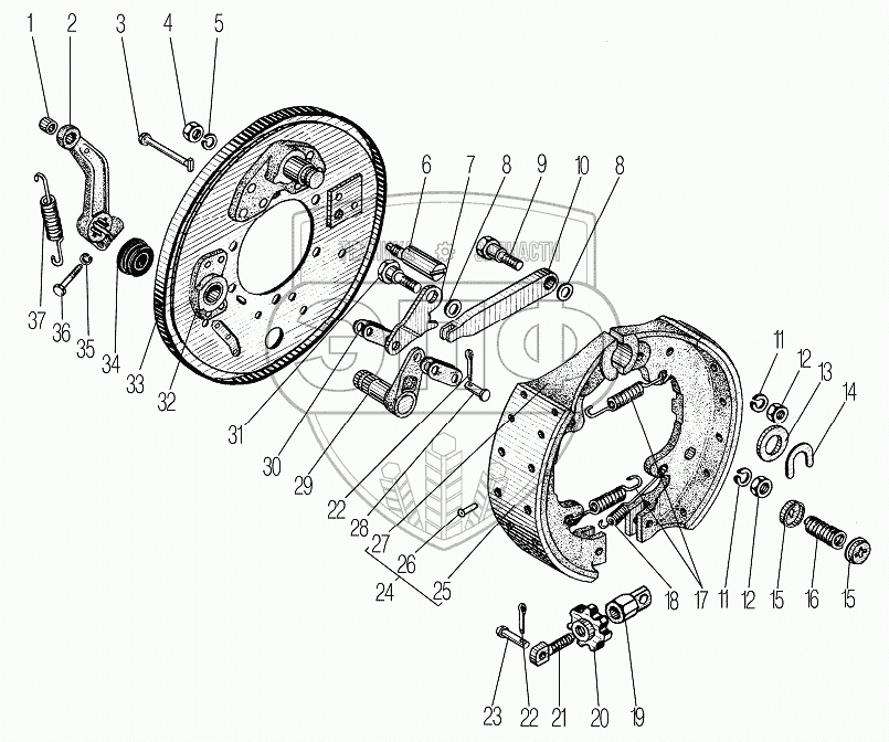 | 33 | 4320-3507005-01 | Щит тормоза с осью в сборе | Нет на складе | |