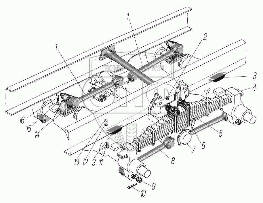 Каталог запасных частей к технике: УралАЗ УРАЛ-43204-1153-70. Задняя подвеска