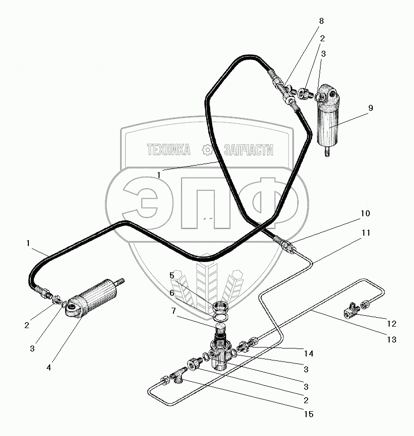 | 13 | 4320-3570162 | Трубка в сборе от пневмосигнала к крану | Нет на складе | |