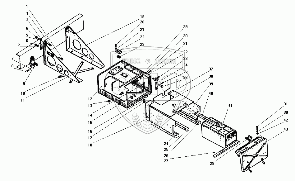 Каталог запасных частей к технике: УралАЗ УРАЛ-43206-41. Установка аккумуляторных батарей