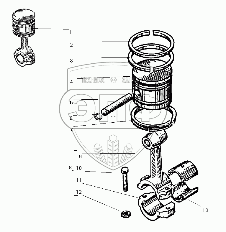| 1 | 130-3509150-05 | Поршень с шатуном | Нет на складе | |