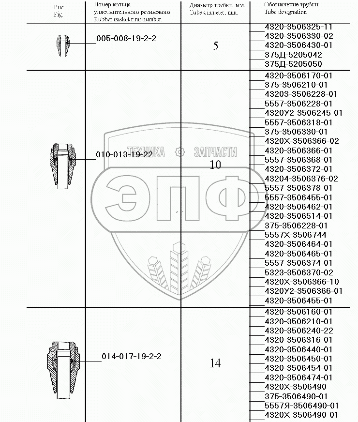 Каталог запасных частей к технике: УралАЗ УРАЛ-4320-31. Уплотнение трубопроводов