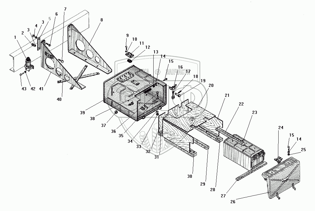 Каталог запасных частей к технике: УралАЗ УРАЛ-4320-41. Установка аккумуляторных батарей