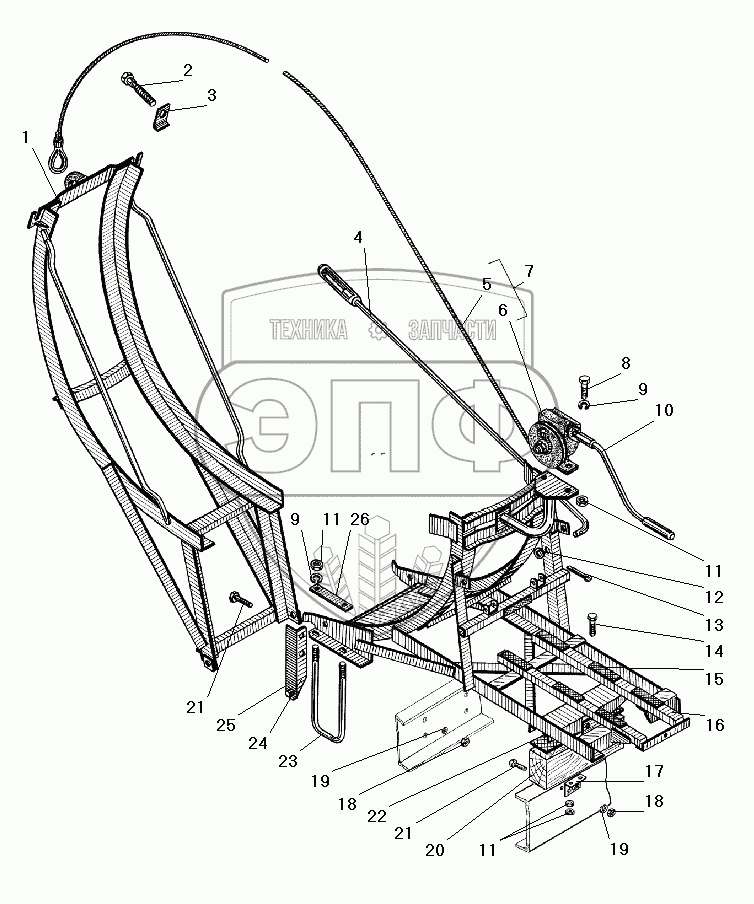 Каталог запасных частей к технике: УралАЗ УРАЛ-4320-41. Вертикальный держатель запасного колеса