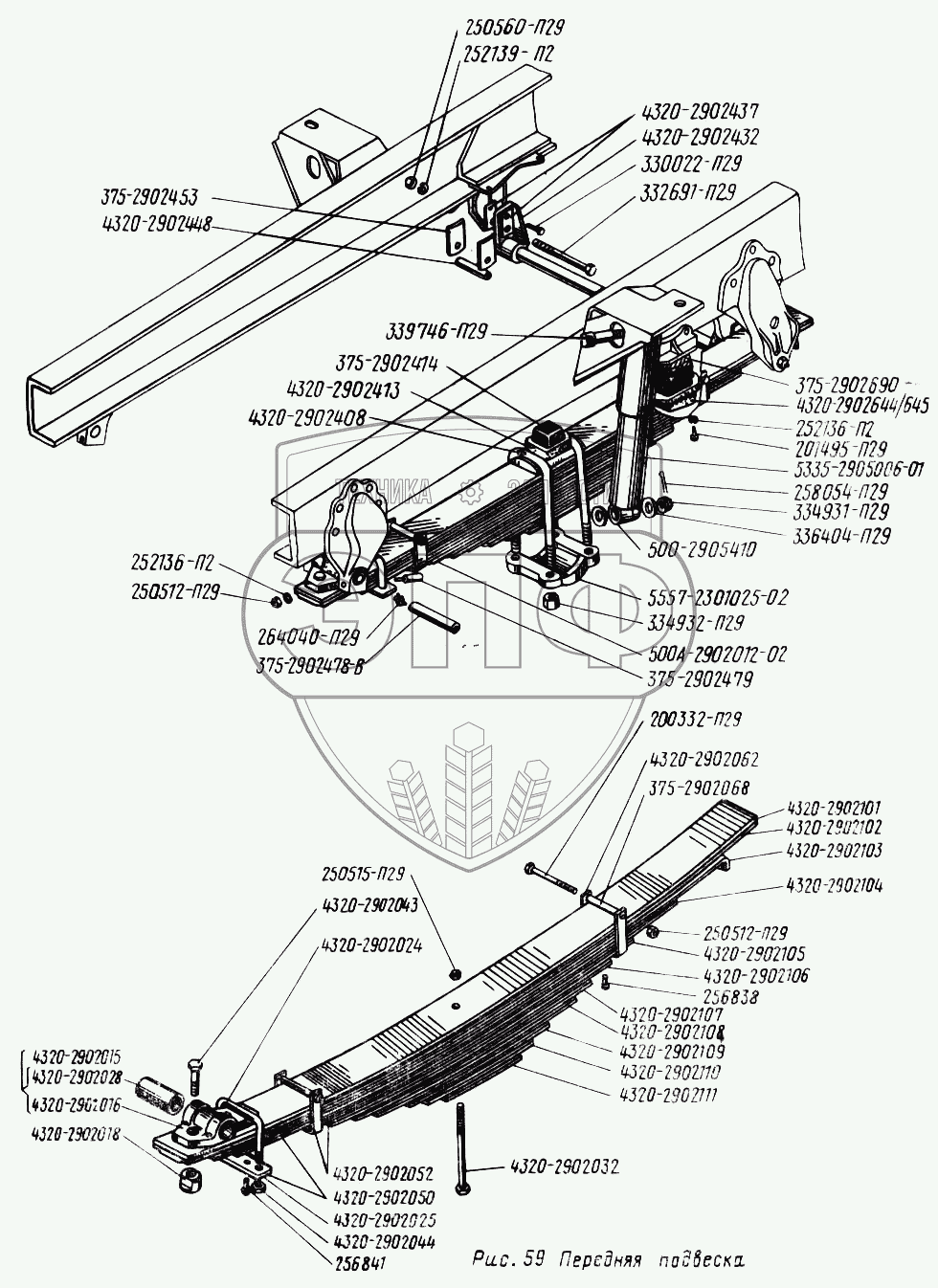 Каталог запасных частей к технике: УралАЗ УРАЛ-4320. Передняя подвеска