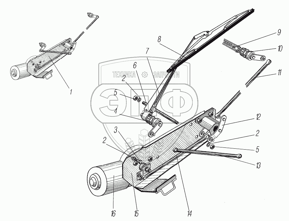 Каталог запасных частей к технике: УралАЗ УРАЛ-4320-60. Стеклоочиститель и его привод