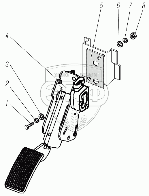 Каталог запасных частей к технике: УралАЗ УРАЛ-4320-61. Установка педали акселератора