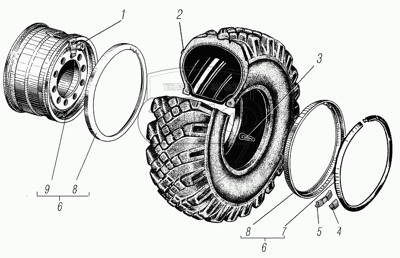 Каталог запасных частей к технике: УралАЗ УРАЛ-4320-6951-74. Колесо и шина