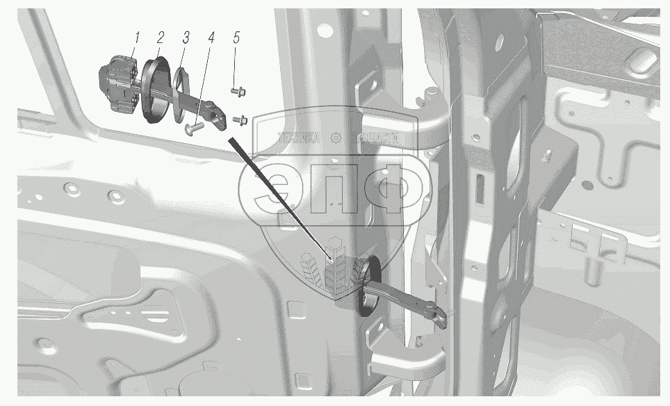 Каталог запасных частей к технике: УралАЗ УРАЛ-4320-6951-74. Установка навески дверей