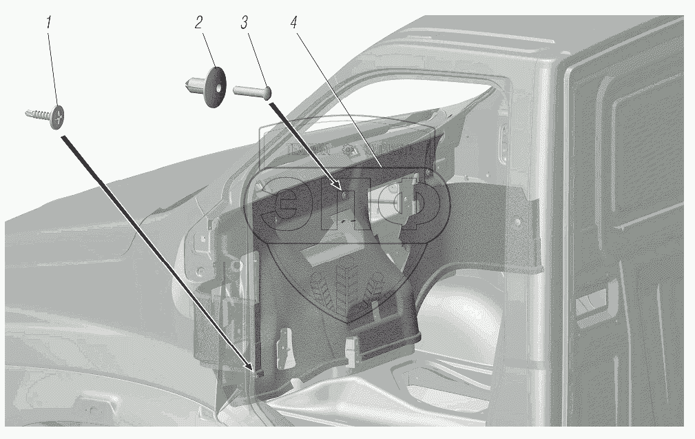 Каталог запасных частей к технике: УралАЗ УРАЛ-4320-6951-74. Установка обивки передка