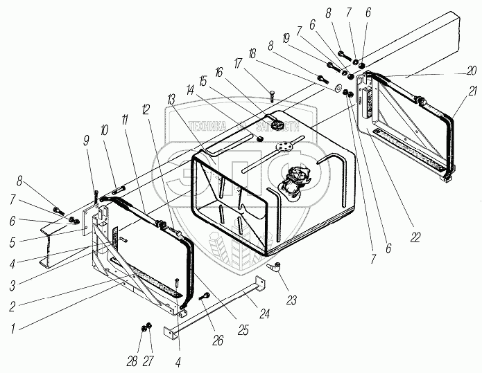 Каталог запасных частей к технике: УралАЗ УРАЛ-44202-3511-80. Дополнительный топливный бак