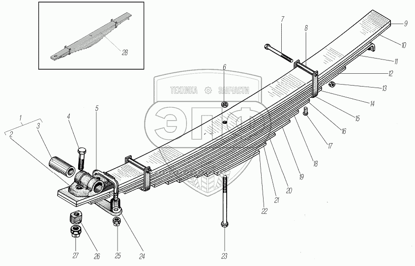 | 28 | 6361-2902012 | Рессора передняя в сборе | Нет на складе |