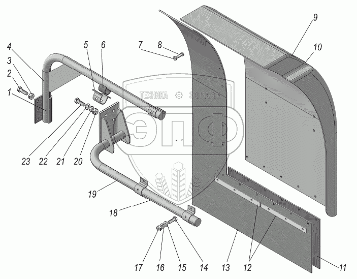 Каталог запасных частей к технике: УралАЗ УРАЛ-44202-3511-80. Установка передних брызговиков