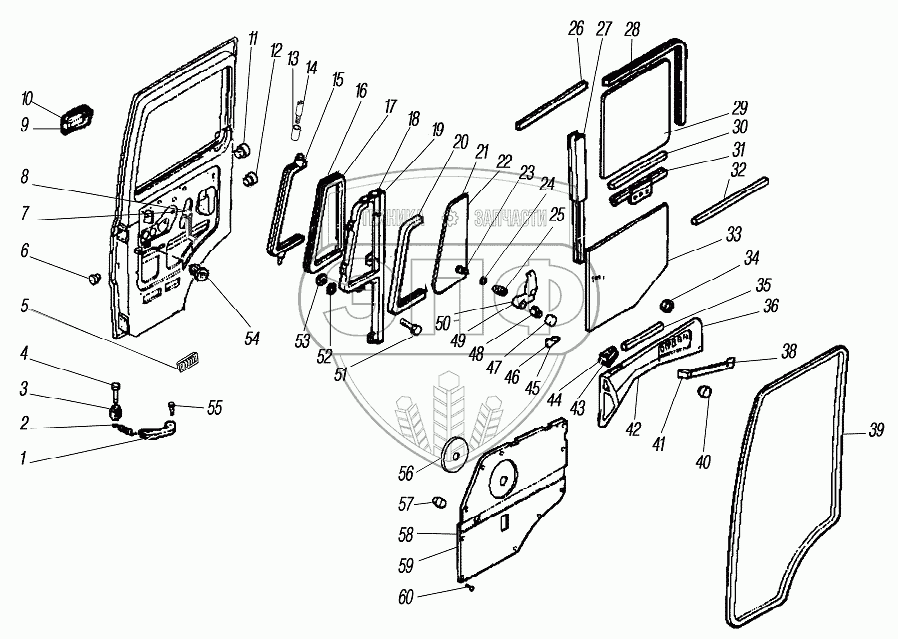 Каталог запасных частей к технике: УралАЗ УРАЛ-44202-3511-80. Двери кабины