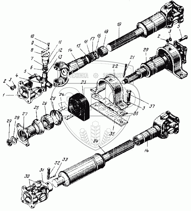 | 34 | 375-4502015-Б | Вал карданный (сварка) в сборе | Нет на складе | |