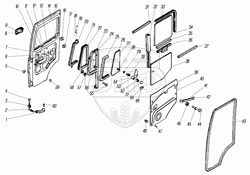 Каталог запасных частей к технике: УралАЗ УРАЛ-532361. Двери кабины