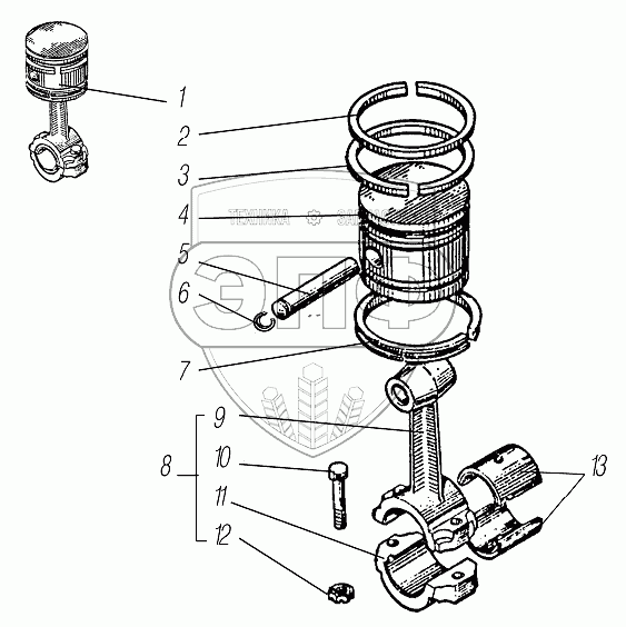 | 1 | 130-3509150-05 | Поршень с шатуном | Нет на складе | |