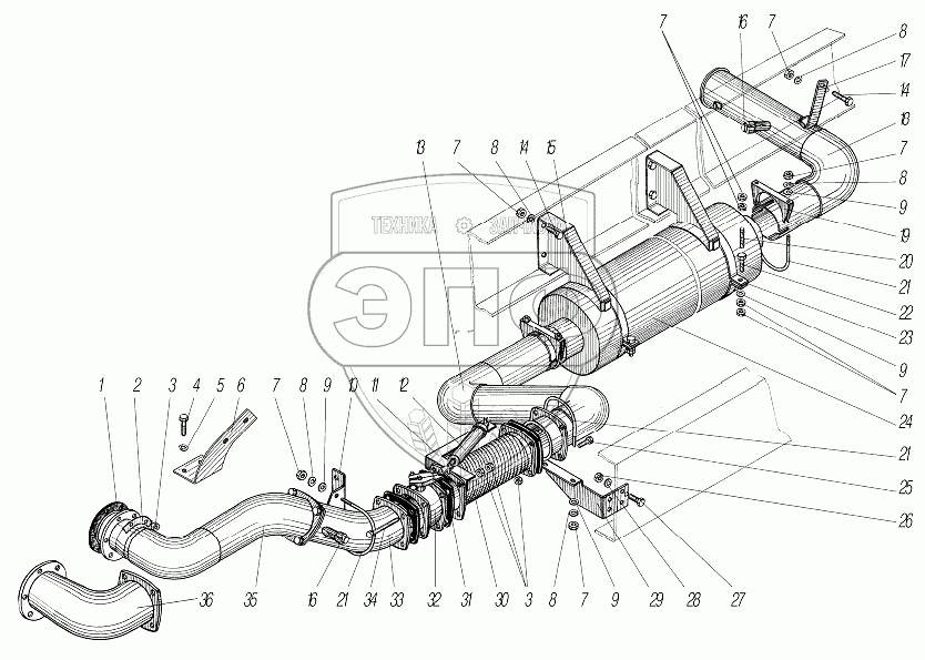 Каталог запасных частей к технике: УралАЗ УРАЛ-532361. Система выпуска газов
